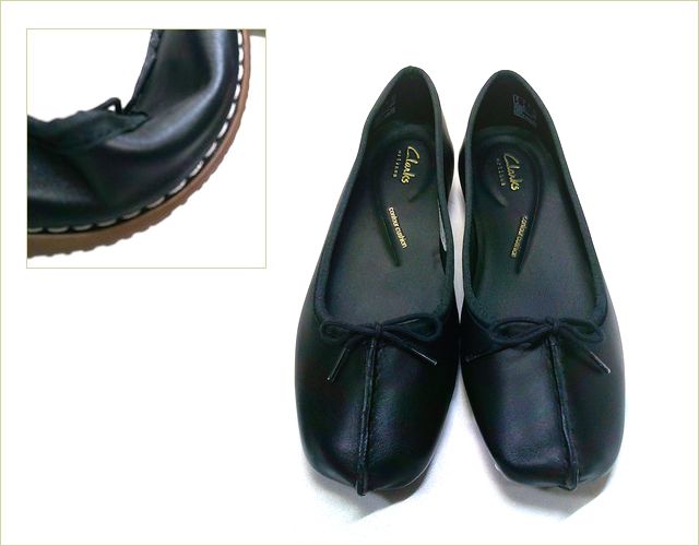 Clarks クラークス cl213bl ブラック 【足を包む感じのフィット感・どんどん歩ける・Clarks カッター パンプス】/底の厚さ(後ろ):2.4cm/底の厚さ(ボール部):1.5cm/表甲素材:牛革/底材:合成ゴム/ウィズ:3E相当/重さ(半足):約170g/※ 紐のリボンを締めることで、履き口のトップラインを絞ることができ フィッティング調整が可能です。